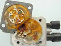 Corrosion from water inside carburetor.