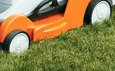 Cut it - After the first three weeks you can cut your lawn, but only on the highest setting. Be careful making turns to avoid tearing the tender, young grass blades. While new grass can withstand some foot traffic, continue to limit it as best you can. Leaves block sunlight and can impede grass growth, so remove leaves and other debris as often as possible. Use a STIHL blower instead of a rake to avoid damaging new seedlings.
