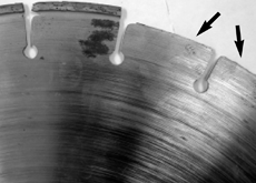 Reason: Improper wheel use causing excessive dullness. A dull wheel can have segments separate due to impact, fatigue or frictional heat.