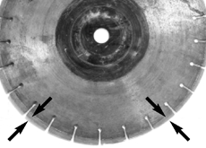 WARNING! A diamond wheel with segment loss may increase reactive forces or continue to break apart or release segments during use that could result in serious or fatal injury. A diamond wheel must be replaced immediately if there is a segment loose, cracked or missing. Never start or operate any machine with a damaged diamond wheel.
