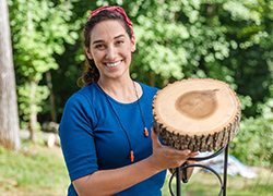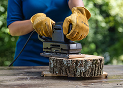 Using wood cookies cut from logs, these side tables improve the aesthetic of your outdoor space while also adding some utility to your patio décor.