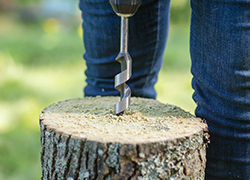 Using a ¾” drill bit, drill down about six inches into the center of the log.