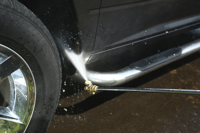 The Pivot Coupler is a pressure washer accessory adjusting to three different angles to clean hard-to-reach areas.
