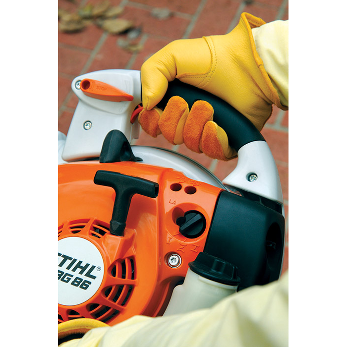 For the toughest landscaping challenges, professionals turn to our most powerful gasoline-powered handheld blower, the STIHL BG 86. It features a fuel-efficient, low-emission gasoline-powered engine, and includes both flat and round nozzle attachments for better job versatility. The blower is also one of our most comfortable to use, with a four-spring anti-vibration system, a soft-grip handle and our ElastoStart™ shock-absorbing starter.