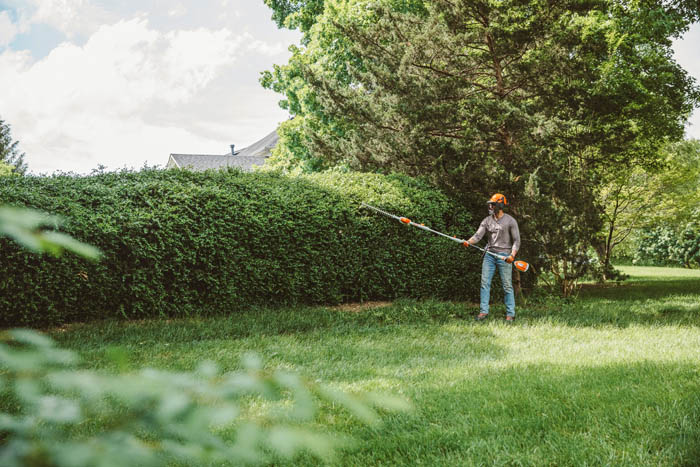 STIHL hedge trimmers with single-sided blades are ideal for cutting hedges in one direction that range between waist and chest height. -