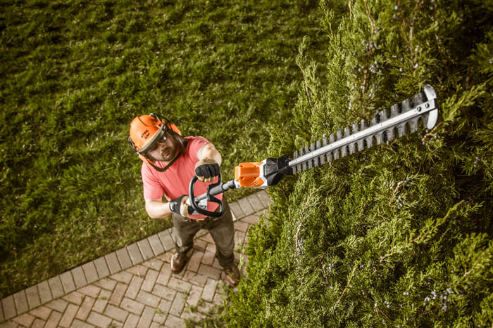 Looking for trimming versatility? Check out the STIHL HLA 65 lithium-ion extended reach hedge trimmer. This extended reach hedge trimmer offers long run times with no gradual drop in performance. It features six different locking positions, giving professionals a 105-degree operating range. Its cutter bar is also adjustable and foldable and includes an automatic blade stop when folded. The hedge trimmer is lightweight and easy to maneuver in hard-to-reach places. Its quiet motor produces zero exhaust emissions – an excellent tool for working in noise-restricted or environmentally sensitive areas. Best of all, there’s no gasoline cost and no restrictive power cords.