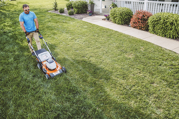 Just the squeeze of a lever engages the RMA 510 V battery-powered lawn mower’s efficiency driven performance, helping reduce user fatigue commonly caused by traditional push mowers. A 21-inch steel mowing deck with a 20-inch cutting width makes the RMA 510 V highly maneuverable and able to quickly cover small-to-medium size yards. The mower’s self-propel function features a variable speed setting control, allowing the user to choose a mowing speed between 0.6 mph to 2.8 mph. With the 36-volt STIHL AP 300 S battery, the RMA 510 V can mow up to 3,078 square feet on a single charge.* With battery, users can enjoy instant starting, low noise, zero gasoline costs, and zero exhaust emissions. For added convenience and customization, the deck of the RMA 510 V is adjustable to seven different cutting heights. The handlebar adjusts to three height positions for user comfort. Durable, 10-inch rear wheels and 8-inch front ball-bearing wheels allow for mowing over rough terrain.