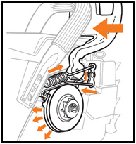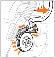STIHL chainsaws are equipped with a chain stopping system designed to reduce the risk of injury in certain kickback situations. It is called a STIHL Quickstop® chain brake. The STIHL Quickstop® chain brake is designed to stop the rotation of the chain if activated by the operator’s hand or by inertia if the saw kicks back with sufficient force. In some working positions, the STIHL Quickstop® chain brake can be activated by inertia, stopping the chain within fractions of a second.