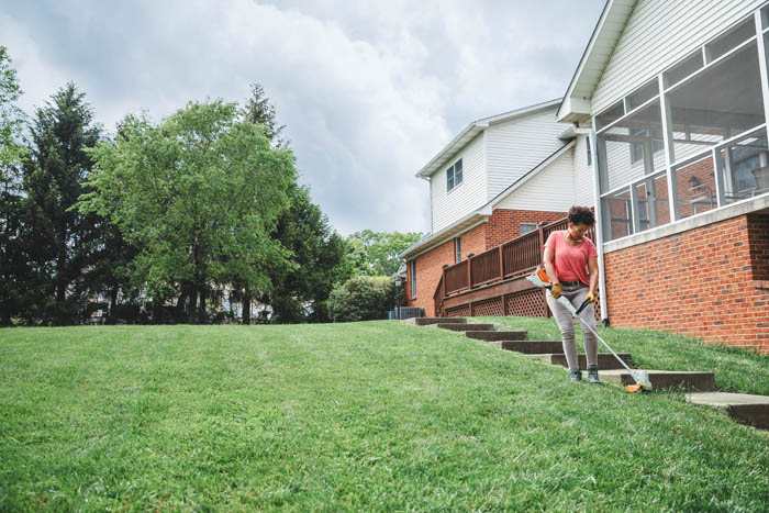 Lightweight, easy-to-use, battery-powered trimmer—ideal for suburban yards.