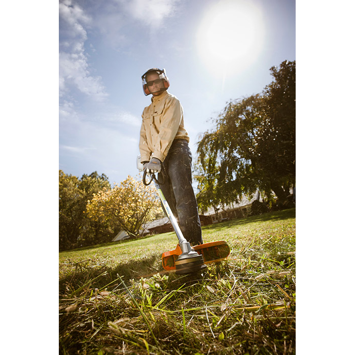 WARNING! Improper use of any trimmer/brushcutter can cause serious or fatal injury. Read, understand and follow all safety instructions in your instruction manual. To reduce the risk of injury from blade contact, circular saw blades may be used on FS brushcutters that have a limitstop, a bicycle handle and double shoulder harness and not on FS brushcutters with a "J" handle or loop handle. Other rigid blades may be used on FS brushcutters having a bicycle handle, a "J" handle or a loop handle equipped with a barrier bar. To reduce the risk of eye injury always wear proper eye protection. Always use the appropriate deflector for the type of cutting attachment, as explained in your instruction manual.