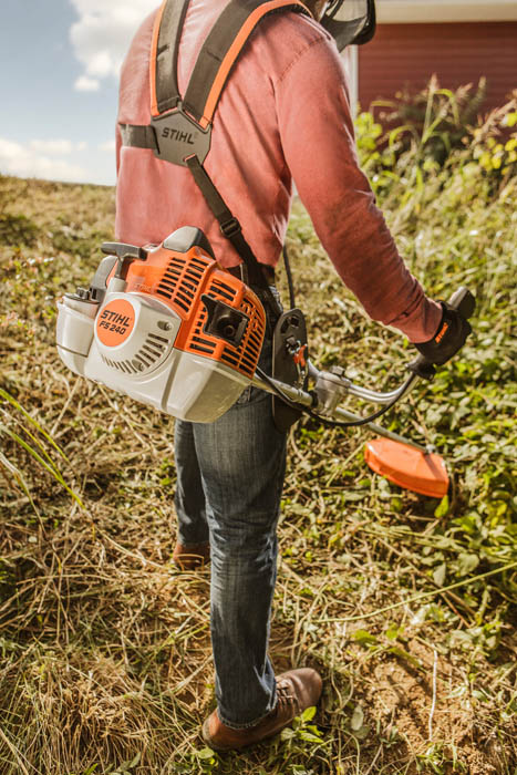 Using a shoulder strap or carrying system helps distribute the weight of the equipment for increased operator comfort and improved maneuverability. -