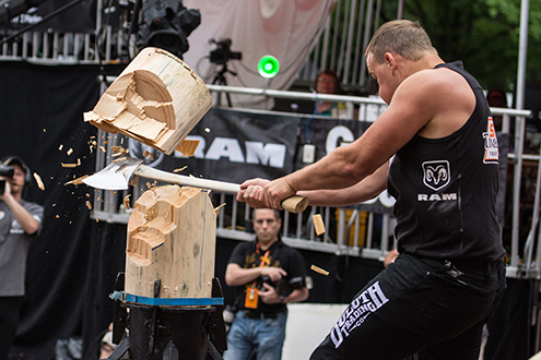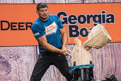 STIHL TIMBERSPORTS® athletes train in a manner that is often based upon their athletic background but is fundamentally movement specific. Most athletes come to the sport from different backgrounds, and from that he or she has an understanding or an idea of what it takes to become fit. Just as with any athletic endeavor, the real job is mastering the skill that defines the sport. The skills in STIHL TIMBERSPORTS are a combination of strength, stamina, body mechanics and timing. To hone each of those areas, the athlete must work on the fundamentals of strength, general fitness, hand eye coordination and flexibility.